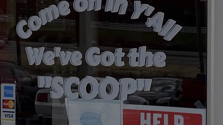 a sign for the ice cream parlor