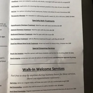 Walk-ins welcomed but make an appointment & can get on their schedule, they tend to get busy. I haven't had a bad experience since I started taking my Husky mix here.He is always done fairly quickly & is super soft for weeks after his appointment. They are reasonably priced & pick up to drop off is a breeze.