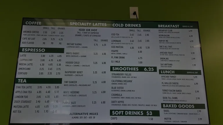 It was good to be able to pop into this new north side location of Penny Lane. There aren't any coffee shops near this area so it's nice to have this option. They have a food variety of hot and iced drinks and some breakfast sandwiches. Prices seem reasonable. It doesn't have the funky, gritty ambience of the original location downtown, but they do have some decoupage tables and pop culture collage posters with a bit of an homage to the main location.