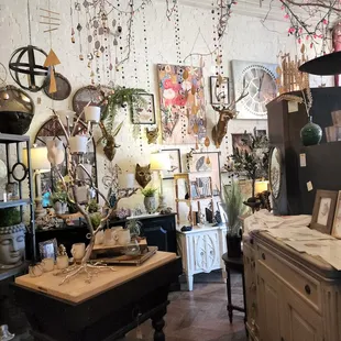 What an awesome find while walking around NuLu. We were intrigued by the window and walked in to find a two level store with so much stuff packed into it we list track of time. If I had a car I would've bought a lot of stuff and if I lived near here I'd be a frequent shopper. They have everything you can imagine. Great place to find gifts (I did) !Come on in, you too will think it's fabulous!Check in on Yelp gets you a 10% off perk that I totally forgot to do!Btw... pictures do not do it justice.