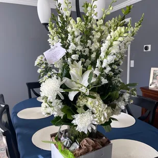 I haven't used Schmitt's Florist in a while but I wanted to provide a review that is quite long overdo. One of my friends I used to work with over a decade ago passed away suddenly. After collecting money from all of our friends. I went to Yelp and selected Schmitt's. When I arrived, I was greeted quickly and after explaining that I didn't know what I wanted, the receptionist returned with one of the designers. We had a very detailed conversation where she got to know the person we were laying to rest. Afterwards, she went downstairs and created two beautiful extremely large white bouquets. The creations where all her idea and I believe I was still in shock and was unable to make any decisions. Due to the very short notice I was unable to have them delivered but they helped me pack them into my car with extra insulation so they would not wither as it was freezing cold outside and one had a plant that our friend's mother could repot. The flowers spent the night in my home and the next morning I transported them to the church in the freezing cold. The flower looked as if they had just been done and they were beautiful! Our friends mother loved them and keep the plant as a tribute to all of us who loved her son. I was very thankful for Schmitt's love and care!