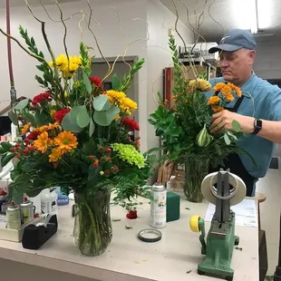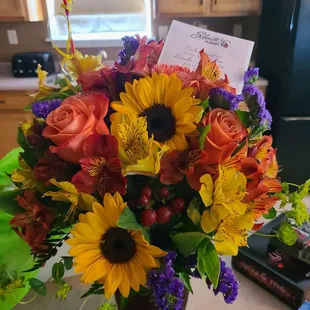 My husband picked up arrangement at the shop. He said people were nice and the place was bustling. I'm very happy with the variety of flowers used.