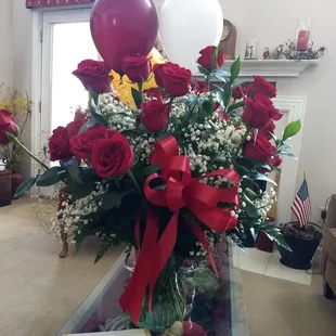 I ordered 50 long stem red roses for our 50th wedding anniversary. They were delivered as instructed. But the most important thing was how they looked and impressed my wife. They were in 2 vases as instructed and were the most beautiful red roses we had ever seen. They had the biggest buds we had ever seen mixed with baby breath and a large red ribbon. Gorgeous!