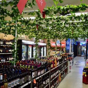 rows of bottles of liquor in a store