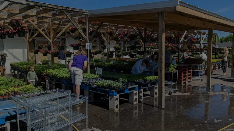 Lots of hanging baskets on Mother's Day weekend