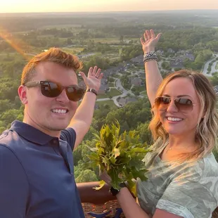 An awesome couple enjoying an exclusive hot air balloon ride for 2 over Louisville, Kentucky