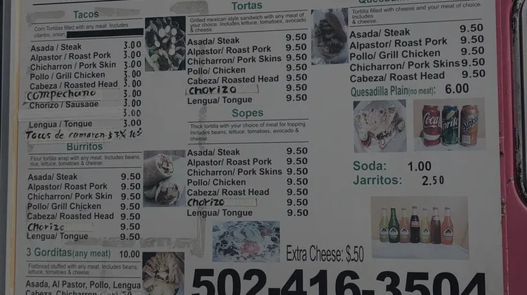 Food truck located on national turnpike across from the speedway and in front of the car wash. The hours here are hard to determine. I've seen them open early hours and late hours in different days of the week while driving in that area. My first two times I stopped in (one on a Monday around 3pm and once on a Friday around 6pm) the truck was there but nobody was manning it. The 3rd time I went I was able to finally get service and try this place out. This is a cash only food truck. So I'll put that out there early for the curious. I ordered the chicken quesadilla and my wife ordered a steak burrito. Neither of us ordered a beverage but they do sale cans of soda and bottles of Jarrittos. The food portions were very large and adequately priced at around $9-$11 a plate. Both my quesadilla and my wife's burrito had plenty of flavor and copious amount of cheese. I will pre warn those who may like spicy sauces or may only like stuff with a little kick. There salsa for the quesadilla was very spicy and hot. My wife had verde sauce and said it was even spicier then the salsa. So don't do what we did and go without a beverage. Get yourself a drink! Or if you don't like spicy or hot at all then stay away from the sauces. My only major complaint outside of the inconsistency on availability was we ordered these plates and we weren't given any utensils and they had none sitting out. The wife and I was dining on the small picnic table in front of the food truck. I did finally get the workers attention again and was able to get a plastic fork. However he said they had no knives. Which kinda shocked me and made eating our meals extremely difficult and extremely messy. Now to be fair there was a language barrier. So maybe he didn't understand what I was asking for. But I tried repeating myself several times and he clearly responded we do not provide that. All in all it was a solid experience. Food was pretty tasty. It could use some work with being more consistent and offering proper eating utensils. Also may want to look at a cost effective app or device like square to take credit cards. There is no excuse in this day and age not to accept cards as a form of payment. If I'm in the area and have cash and they are actually open I'll probably give them another visit to sample other items.