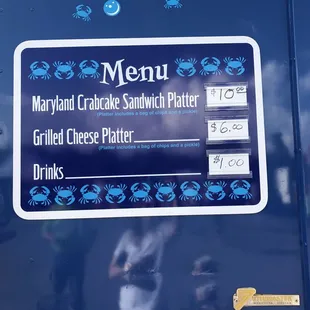 The blue crab truck people are the same people that have the crab cakes at st james court art fair. at 3rd and magnolia .So you know they are good. its $10 for a crab cake sandwich that comes with chips and pickle spear. this is reasonale price considering how much crab and lobster have gone up. But they also have a good grilled cheese sandwich. I love the red aioli sauce they have for the crab cakes , I even dip my chips in it good stuff.