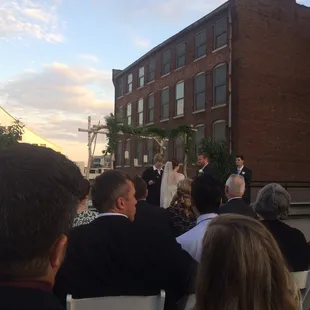 This is a cool venue! My first visit was this April for my cousin's wedding. It is located in downtown Louisville near Slugger Field and is close to a parking garage. Upon entering the building, we were of course greeted by the guest book team, but also the staff of the Ice House. They offered to check in coats, stood with trays of cocktails and helped direct us to the elevator for the reception. My cousin originally intended for a roof top wedding and reception but the weather was not cooperating. They set up chairs and a trellis on the 2nd floor, which is surrounded by windows. This section would fit more than 100 people (if that) but this worked well for my cousin's guest list. We had plenty of room for the quick ceremony. The reception took place on the 1st floor level and is wonderfully large - much more than we expected. A full bar is on the far side of the room, a large dance floor in the middle and a stage for the DJ or presentors. Round tables were beautifully decorated and in the corner my cousin placed a photo booth. I also appreciated a connected outdoor area where guests could step out for a smoke. Although they were outside, glass windows are built around the area so it feels like people are still close because you can see them.Behind the bridal table were huge letters that were lit with bulbs and spelled LOVE. Nice, simple but elegant touch.The food and service was fantastic. The team was quick to bring out more items to the table and buffet line. The bartenders were also fantastic. Every drink was delicious and it was made quickly.The only question mark is acoustics for this venue during dancing or presenting - and, it's a bit of a blank slate so you may need to get creative or bring in decorations for a large event.