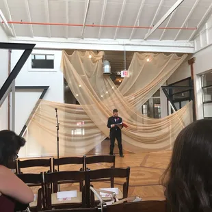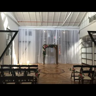 This venue transformed beautifully to a wedding venue. There was plenty of space, having the ceremony space separate feed nicely into the area where the reception was. All around, the space was very accommodating. The Chairs/seating was the only issue. I was told that the chairs were furnished by the space itself, and the chairs were the only draw back, uncomfortable and other issues.