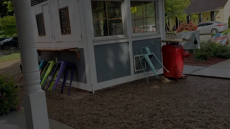 On the Loveland bike trail. Nice little place to sit and have eats. The atmosphere reminds me of being at the beach on vacation. Parking on the street .