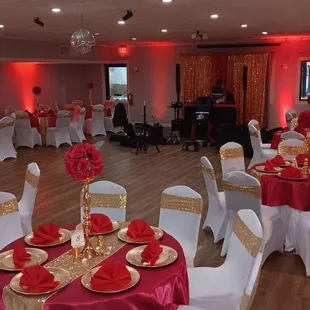 Nice spacious area. Roomy and a dance floor. Good area away for the food and drinks. Plenty of walking room. Music sound good in room. Ambience is great. If I had a function I would pick this place.