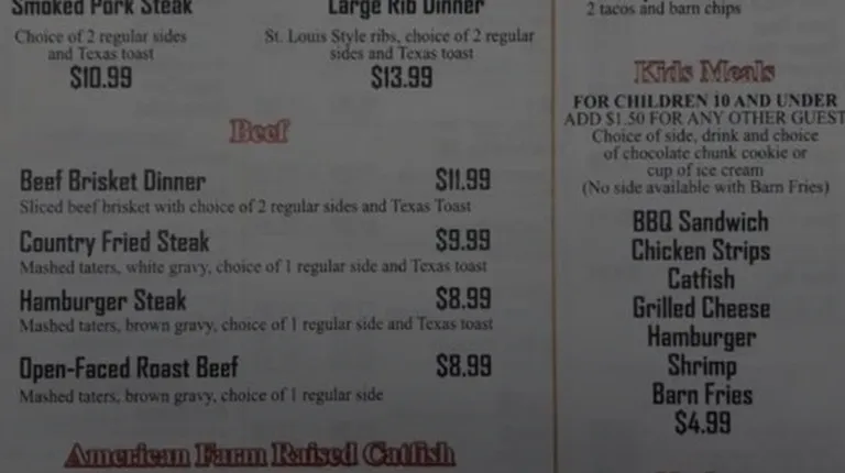 Normally a very good place to eat so I'm not going to trash the place. The only problem I have is on occasion the fish is way over cooked. With the help problem plaguing the country it could be training issues with new help but the experienced cooks should not have let the last batch I bought left the kitchen. I still give BBQ barn my recommendation because it's just an occasional problem that always seems to occur when I carry out.