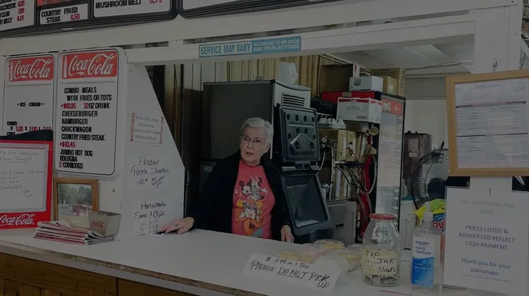 First time stopping at a hole in the wall place like this and I won't hesitate next time because it is actually a really good burger and also a good size I will post a few pics for reference and I have really large hands so keep that in mind. Place looks to be takeout only but the friendly service of the old lady at the front counter was nice. If you are in bills Tennessee and if you eat meat I suggest stopping here they have a large variety of foods to choose from this review is on the burger and the service. There is nowhere inside to sit as this is an old establishment there are picnic tables outside or you can sit in your car. Thats all for this review.