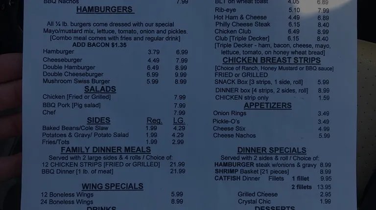 Good. Southern. Food and personality! Even though Big R's is drive thru only right now, we still enjoyed amazing personal service. On top of all that, the food was delicious. We had catfish sandwiches and bacon cheeseburgers. The filets were HUGE with decent portions of seasoned fries. The cheeseburgers had solid bacon, not that cheap stuff.It is totally worth the stop off on any journey to or from Tupelo.