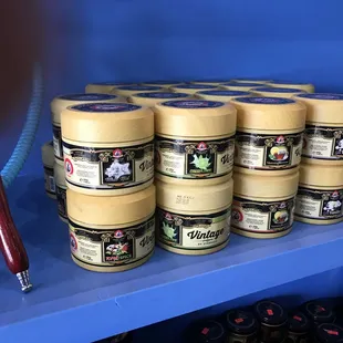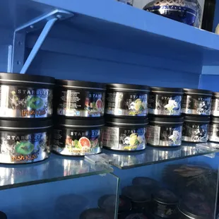 shelves of hookah items