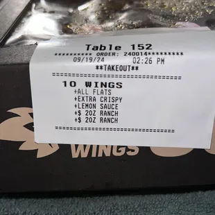 6 Boneless Wings 6 Traditional Wings Potato Wedges Desert Heat on boneless and Spicy Garlic on bones.