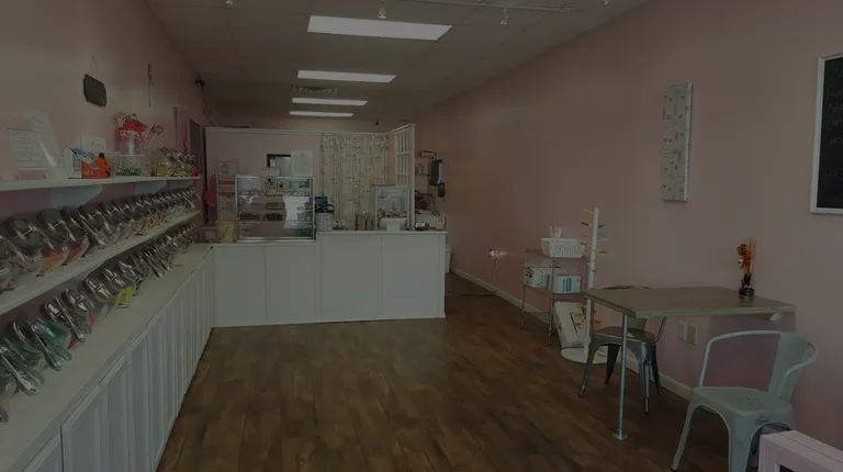 a candy shop with pink walls