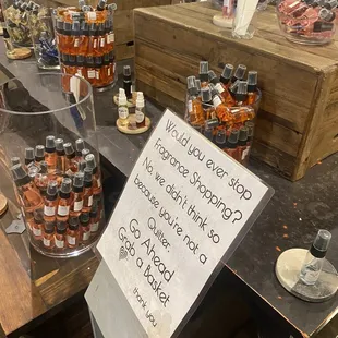 Huge selection of oils, including candles. Great customer service. Sales Associates take their unlimited time to show you different fragrances. The fragrances come in small and large. The atmosphere in the store is warm and inviting.
