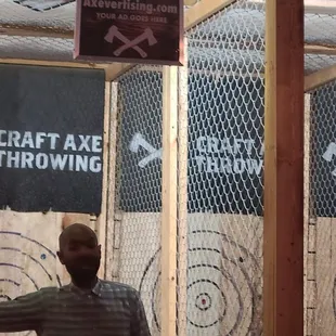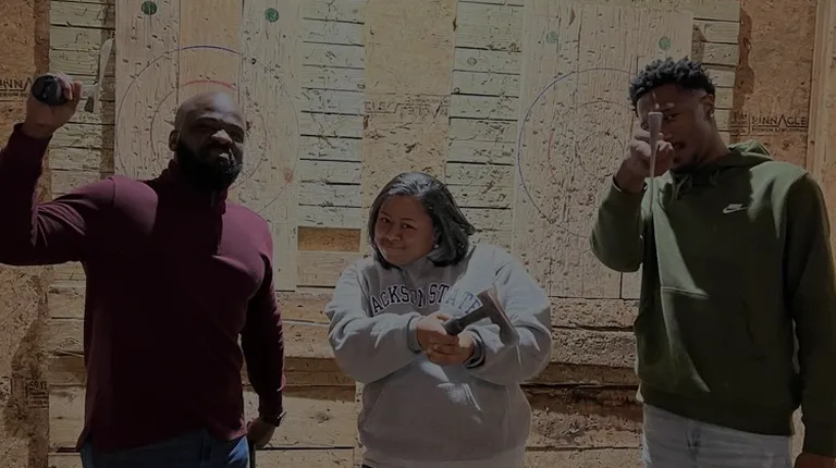 Marcus Jackson was our axe throwing experience curator and the owner. He was fun and helpful. Check in was quick and easy using QRcodes Music and energy in the building added to the good experience from DJ Ayo. The food was good , there were even an option for vegans, which is always a win for me. Great place to let our some frustration. They are wheelchair accessible, clean, and nice workers. My favorite part of the experience was the new throwing technique. I mastered the underhand throw, possibly due to my bowling skills or softball lol .Satisfied overall Me and the yelpsquad will definitely be back!