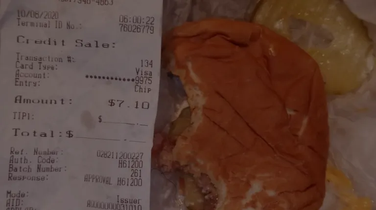 a receipt and a sandwich