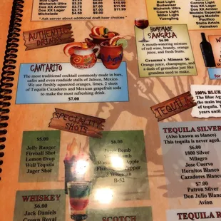 menu for tequila