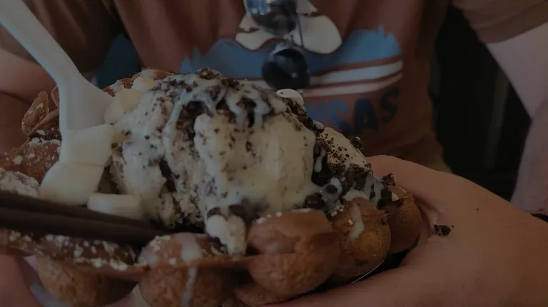 Funky Cones is unique. The line was long but moved quickly. The three young girls were kind and working hard. Our table needed wiped down and was out of napkins, but I took some from the table beside us. It wasn't a big deal. My Strawberry Funky Cone came in a plastic boat. It was heavenly. The warm waffle with vanilla Blue Bell ice cream covered in Strawberry puree was the perfect combination.My husband's Funky Monkey and my son's Oreo Funky Monkey were both delicious as well. Three waffle ice creams were $28. One is big enough to share if you don't want to feel stuffed.