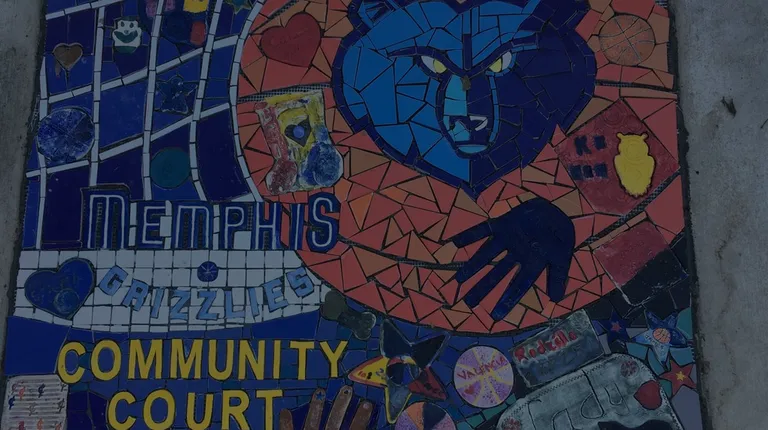 Lester Community Center - Memphis Grizzlies Community Court, hand made tile and letters by Lester Community Center participants.
