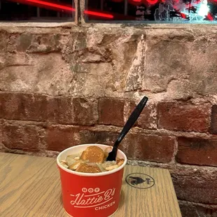 First time trying Hattie B's and they definitely didn't disappoint! I know they're hyped up as one of the best chicken joints in TN so I've been wanting to try them out.My husband and I weren't too hungry when we visited though so we decided to share the dirty bird fries. Highly recommend! It was a good amount for two adults. We both loved the fries with all the toppings it came with. Top notch as far as loaded fries go!Service was quick and the interior was kept very clean. We came on a Friday afternoon and it was packed! But surprisingly the wait wasn't too long for us to get our food.I will definitely be back to try more of their options! Their chicken sandwich and the desserts sound delightful!
