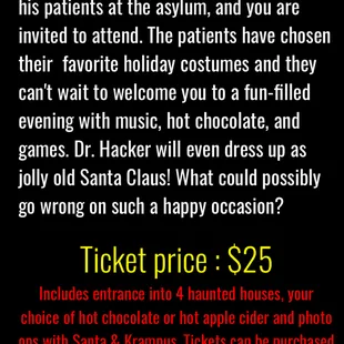 A haunted house on Christmas? Who knew?So I went to check it out. As I drove up to park. I noticed it was packed with those looking for a good scare. But that didn't make parking very difficult at all. As there was plenty of available space. I do hate the long walk to the side of the building. But hey it's all good. I'm just there to get a fright myself. The line was fairly long to get into this spectacular attraction but i'll cover it more in this review. It took me about 15 minutes to get in so I may get my picture with Santa Claus and Krampus. It was quite amusing to get my picture with Santa as to take a trip down memory lane but with an adult Twist of humor as he holding as bottle of Jack & I'm holding myself a Crown Royal. After that I got my picture with Krampus. Whose costume & makeup work was on point. I really enjoy this to as I am a big fan of the movie Krampus.I have to say the acting of the characters was fairly fun as they did spook me & gave me chills as I went through each one of the houses. Their makeup was on point & looked very professional. As if it was done by a movie studio. You should check out the creepy elf I have a pic of. I was impressed with the art work of the props & the interaction of some as you have to push bee hives out of your way in the Forrest Of Fear. I was also impressed with the backgrounds for each house. The background designers who created didn't leave out much detail. I also have to mention the sets are excellent. Each of the 5 houses I've went through felt real especally the Morgue of the Insane asylum and the hillbilly Shack. I was impressed with how everything was ran created & organized. I was so impressed I'll be going to every haunted house they'll hold. Reguardless if it's Halloween or Christmas.Be sure to be on the lookout for their other planned haunted houses throughout the year through the FB page or their website listed on the page.Be sure to Like them on FB & Tell a friend.https://www.facebook.com/hauntedweb/