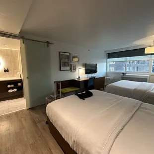 TL;DR. The staff is friendly and helpful. The rooms aren't very clean though. Floors and bathroom are dirty. The beds were clean at least, or that's what we are telling ourselves. When staying here it was post COVID and it did seem the hotel was short staffed. We arrived around 4:30 and our room wasn't ready. We waited at least 30 minutes downstairs enjoying a couple of beers in their lobby. After an 8 hour drive, this wasn't a big deal, as we were happy to be out of the car. When we requested a third set of towels, they were enthusiastically delivered within 2 minutes. No one makes your bed, gives you fresh towels or empties your trash between days. Not a huge deal for us. They have Aveda shampoo, conditioner and bar soap. When the room was ready, it wasn't very clean. The floors especially seemed unattended to. The beds were made but the sheets didn't smell of bleach which I have grown to expect. The toilet was clean. The shower could have been cleaner by other hotel standards. Where the room fell really short was with the floors. A toe nail in the corner. Dried something on the floor and generally appeared to have been swept, vacuumed or mopped. We never go barefoot (or in socks) in a hotel so we lived with it for our short stay. Because of COVID, I am leaving 3 stars, otherwise it would be 2.