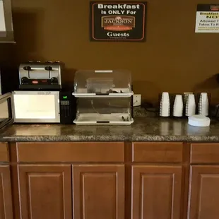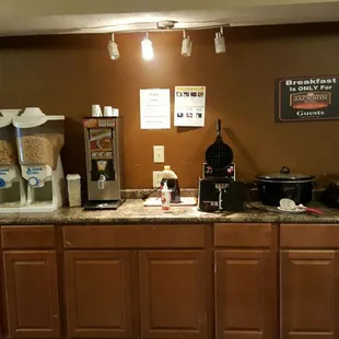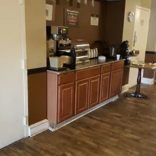 You get what you pay for... for thirty-something a night the shower had signs and cracks that looked like black mold all the way around the tub calking, the tub floor was sticky so I kept my shoes on or put a towel down in the bottom to stand on. I pulled the bed covers over layer by layer to look for any bug signs and found none so I felt safe enough to sleep in it. The floors are sticky and had no carpet of any kind. The staff was friendly enough but you can tell they kinda hate the job. I did not attempt the breakfast bar. Would not have stayed here if it wasn't a last minute booking.
