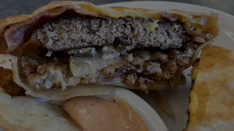 Quesadilla burger and handmade onion rings. Homemade sauce. The best!