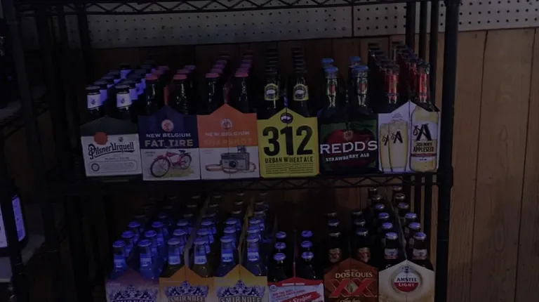 a shelf full of liquor bottles