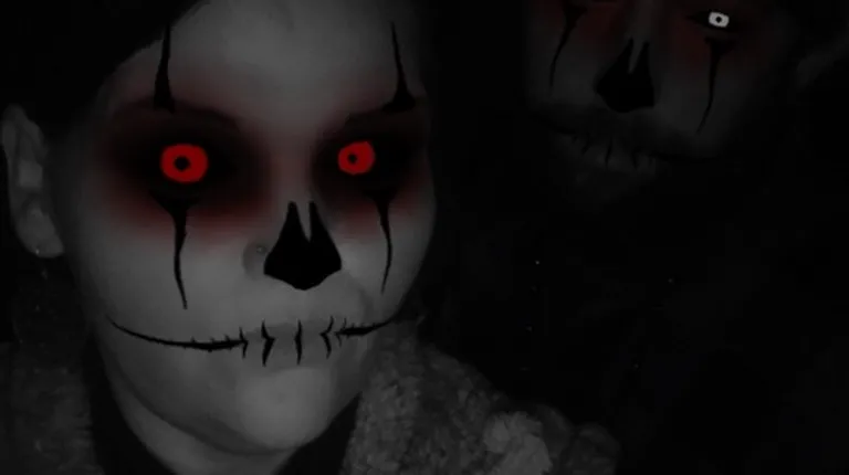 a man and a woman with pink hair and a neon skull mask
