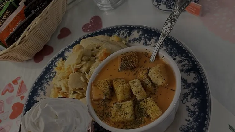 The just divine tea room has a lovely atmosphere. The plate ware and the visual setting will take you back to traditions.I can honestly say the pot pie was one of the better ones I've had in my life and I hate to admit that I'm almost 45 years old so I've had a lot of pot pie and I'm a good judge on this topic. The tomato soup was delicious. It threaded that needle on not being super heavy, but also being creamy.The only thing that could've been better is the tea selection since it's a tea room. I'm coming from Metropolitan areas and most recently from the San Francisco Bay area. My recent visits to tea rooms in that area, Columbia Kate's in gold rush country California, Charleston, North Carolina establishments and other areas has been a selection of teas, including proudly blended proprietary teas of the establishment. At this location, I was provided with a basket of Bigelow teabags to choose from. I'm finding that this is the normal to be expected in rural south so I'm not going to downgrade them for this on yelp stars. But they could differentiate themselves by participating in a tea offering that is better than what you can get at your local grocery and drugstore.