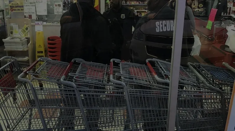 a line of police officers in a grocery store