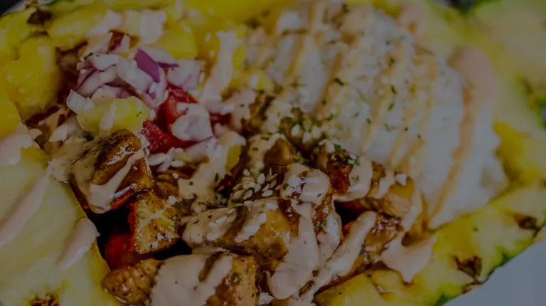 Chicken pineapple bowl with teriyaki sauce