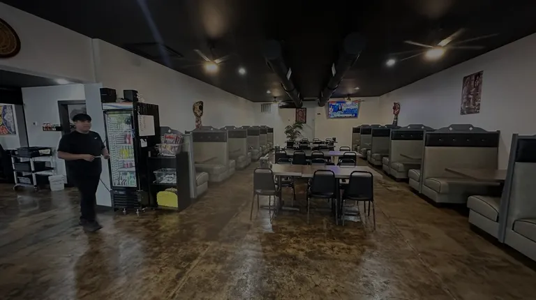 a room with tables and chairs