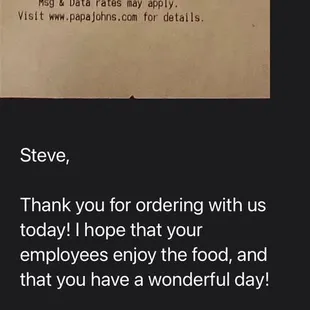 So during tough times it's the Great People that have the ability to make the difference! In 2021 it seems that our society mainly focuses on negativity. "Not Me" especially when Amazing people like Holt Kirkindoll goes the extra mile for his employees and customers. Talk about representing a Brand Positively Holt just did by making our day!!!! I called from another state to order Pizza for my staff and he shined bright. THANK YOU Holt, you have a customer for life when I'm in Nashville