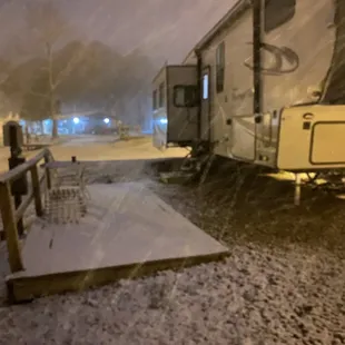 Snowing at Parker's Crossroads RV Park and Campground