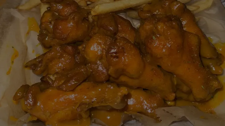 100 pieces party wings. Served with celery, carrots, and your choice of ranch or blue cheese.