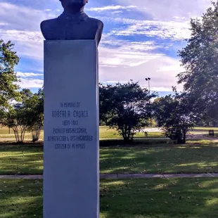 If you're walking around downtown Memphis, just a few steps away from Beale Street is a park with a lot of Memphis history! Robert Reed Church is considered the first black millionaire. In 1899, Memphis didn't provide recreational facilities for black citizens, so Church invested in "Church Park," which contained a playground and a large concert hall where black theatrical groups could perform. Guests such as Booker T. Washington, President Teddy Roosevelt, and W.C. Handy (local legend and considered the "Father of the Blues") all spoke at the concert hall. After years of neglect, the auditorium was demolished, and this park eventually took its place. The park memorializes the old structure that stood in the park in a very interesting way (go see for yourself). So if you're in the area, check it out! In Memphis, there's history on every corner!