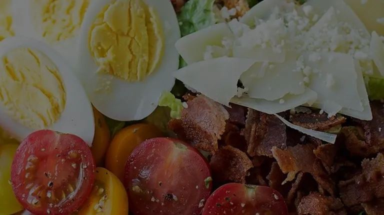 Asiago Cheese, grilled chicken, Cherry tomatoes, eggs and bacon.