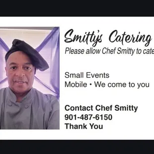 Smitty's Catering. The food is delicious and it is cooked with a lot of flavor. I highly recommend you all to try Smitty's great food.