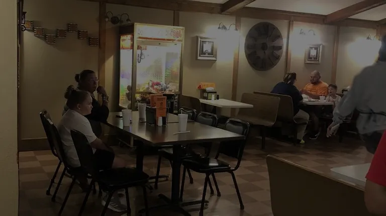 people sitting at tables in a restaurant
