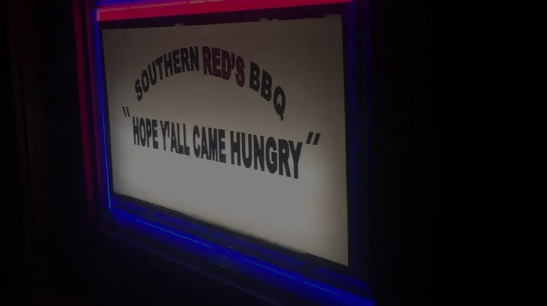 Walked into Southern Red's...finally think I figured out why it's called by that name...The two young boys wrestling on the floor behind the counter were as red headed as the rest...they reminded me of the two Smucker's boys in the commercial about preserves of the same name...I later got their names as Matthias and Noah...bus boys in training.I ordered a full slab of ribs...usually I find more meat that way...oh...fall off the bone sweetness with that smokey flavor...packed full of meat ...dropping off both ends of the platter!...( I had to take half the slab with me) rolls...coleslaw and corn nuggets that I won't order again...fried too hard outside and too mushy in the middle... like the grease was too hot.Loved this meal...will order the beans next time and I now know the current hours are 7:00 am to 9 pm Thursday...Friday and Saturday