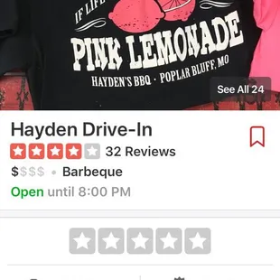 Double sword review for sure Maybe my expectations were set too high as this place has been here since 1948...I would for sure drive out of my way any day for the "BEST PINK LEMONADE "On the planet and they have it hands down!!!! I'm a addict for sure. But then we must decide about the food. We ordered a famous steak burger, it was like a good outside grill burger but small. The burger was the thickness of Mc'Ds cheeseburger and any ole bun. Nothing that would drive you out of the way. It was over 6.00 and you got choice of sides. I got tater tots. Same as freezer ones. Honey got , their famous " chopped barbecue ham with slaw" sandwich. This gets sadly no positive review , it had no flavor at all and when you add bar barbecue sauce which was a bottle on table. It was like eating sauce with a filler between bun. Very disappointed!!! He said awesome fries! And again loved Lemonade which we will go back for but will skip the grill as overpriced. Final word, the girls working there are as nice as anyone could ask for. Great service.