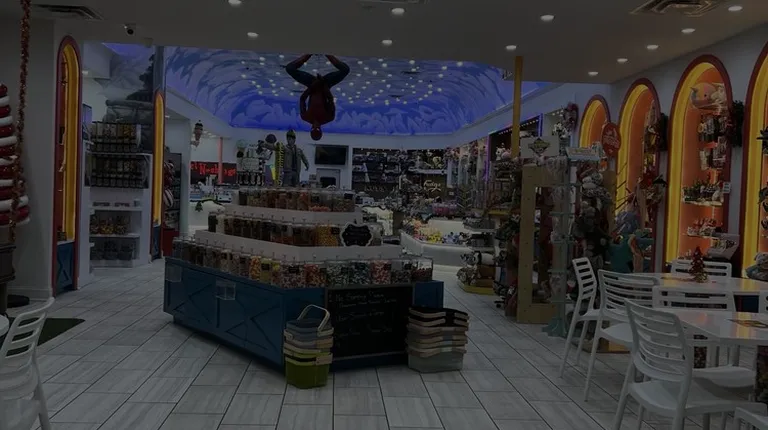 Beautiful store! All kinds of novelty candies, chocolate, ice cream,popcorn and gifts.Bright, colorful, well decorated. Great for all ages!!