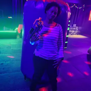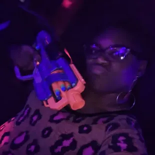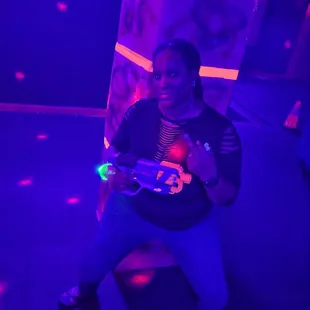 Was taken here by surprise because my friends are awesome and our previous plans got cancelled. From what I know, the owners were very accommodating for this last minute booking. We went later in the afternoon so parking was plentiful. We greeted and got waivers signed as soon as we entered. They have plenty of nerf guns available so there's enough for your party size. We were given light up bracelets that were color coded and told this was for a game we were gonna play during our time there. We were then escorted into the game room and instructed to take our shoes off. There were slots available for shoes. I wouldn't bring much more than that in with you. We played free-for-all and capture the flag. Music was playing in the background that was not too loud so we could hear each other talk. After our games we were shown an area that could be set up for birthday parties that was a nice size. All in all, we had a blast. I'll be looking to go back here for events or to just go shoot nerf guns.